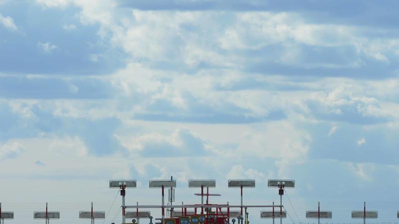 passagiersvliegtuig naderen de landingsbaan visie van achter ils masten Aan de rand van de landingsbaan Pro Video