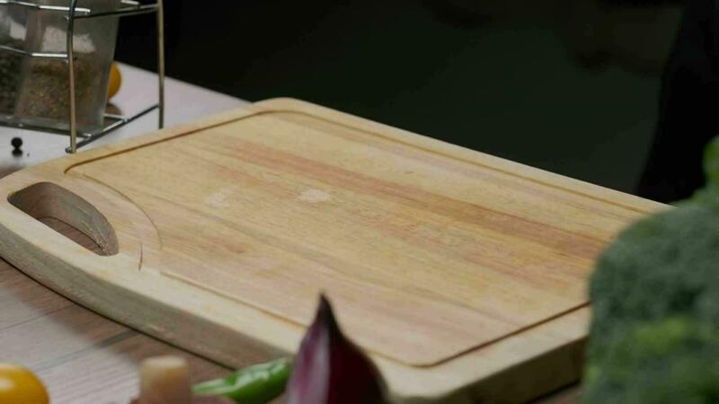 professioneel chef is van toepassing Groenen naar vlees steak. langzaam beweging dichtbij omhoog. Pro Video