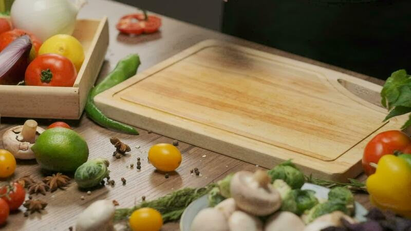 professioneel chef bereidt zich voor en bezuinigingen rood klok peper. dichtbij omhoog langzaam beweging Pro Video