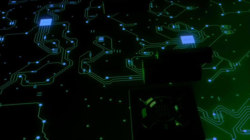 gloeiend netwerk lijnen in chippen. beweging. gloeiend lijnen van spaander lood naar generator. helder gloeiend moederbord of computer spaander met generator Pro Video