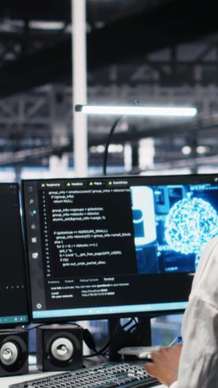 verticaal gegevens centrum vrouw programmeur gebruik makend van machine aan het leren algoritmen naar analyseren gegevenssets. Afrikaanse Amerikaans vrouw in server boerderij gebruik makend van ai neurale netwerken naar herken gegevens patronen, camera een Pro Video