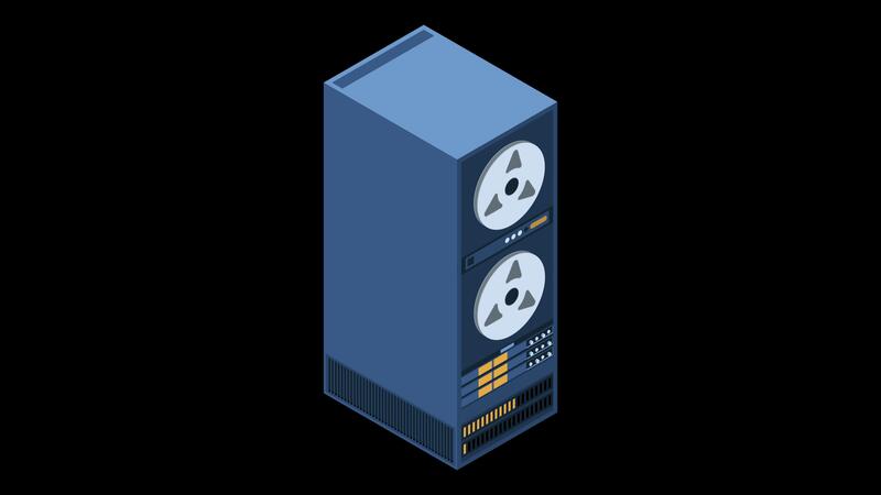 server rek animatie. isometrische server. server netwerk apparatuur. computer netwerk technologie. isometrische technologie. transparant achtergrond met alpha Gratis Video