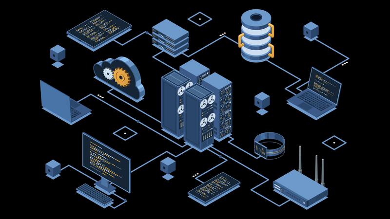 isometrische wolk technologie met server animatie. isometrische server en hosting opslagruimte technologie. web hosting concept. isometrische technologie. transparant achtergrond met alpha Gratis Video
